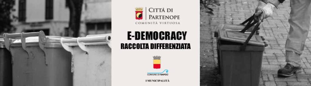 La e-Democracy riguarda un disegno di regolamento per modificare a monte il sistema di gestione in merito alla raccolta differenziata, convocando una conferenza stampa per ampliare la partecipazione cittadina.